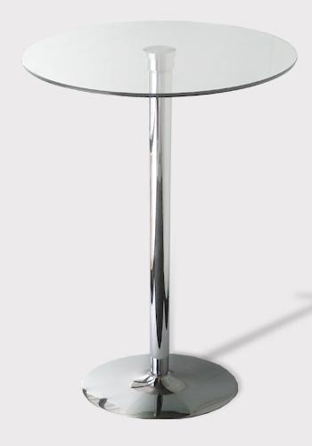 kruhový bistro stůl se skleněnou deskou a chromovou nohou