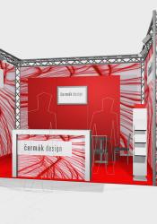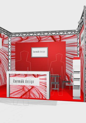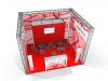 prezentační stánek s příhradovou konstrukcí a bennery,
