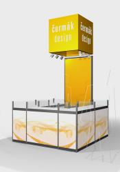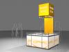 prodejní stánek do obchodních center, 5m prosklené pultové vitríny (var. 2x2m), variabilní řešení poutače, snadná montáž, demontáž i doprava, plocha: poloostrov/ ostrov