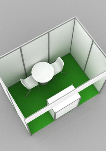 OBSAHUJE: konstrukce stěn octanorm výšky 2,5 m, límec, výstavářský koberec 6 m2 v barvách dle vzorníku. Vybavení stánku: 1x pult, 1x stůl, 2x židle, elektro (4x bodovka, 1x prodlužovací kabel 220V), grafika: 1x logo 1,0x0,3m. Montáž a demontáž stánku + doprava na výstaviště v Praze