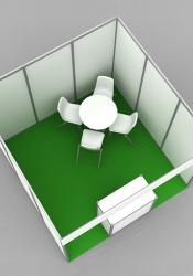 OBSAHUJE: ____konstrukce stěn octanorm výška 2,5 m a límec + výstavářský koberec 9 m2 v barvách dle vzorníku ____vybavení stánku: 1x pult, 1x stůl, 4x židle, elektro (4x bodovka, 1x prodlužovací kabel 220V) ____grafika: 1x logo 1,0x0,3m ____montáž a demontáž stánku + doprava na výstaviště Praha/ Brno