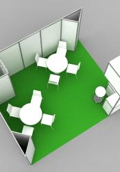 OBSAHUJE: ____konstrukce stěn octanorm výška 2,5 m, nárožní dominanta výška 3,6 m + výstavářský koberec 20 m2 v barvách dle vzorníku ____vybavení stánku: 1x zázemí 1x1m, 1x pult, 1x barovka, 2x stůl, 8x židle + elektro (6x bodovka, 2x prodlužovací kabel 220V) ____grafika: 4x logo 1,0x0,3m ____montáž a demontáž stánku + doprava na výstaviště ve městech Praha/ Brno